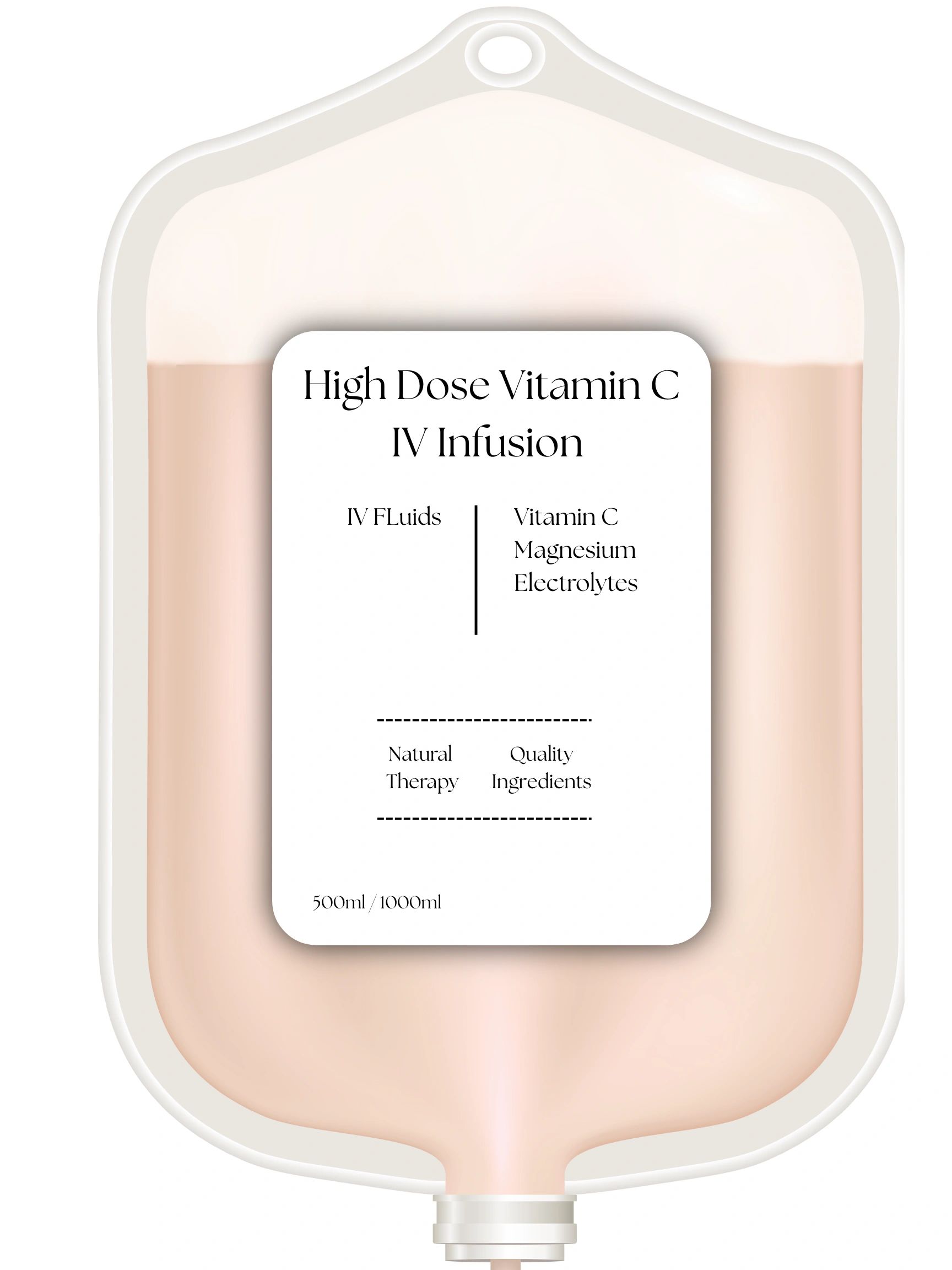 50g Vitamin C with Magnesium in 500ml fluids. G6PD testing required for 50g infusion