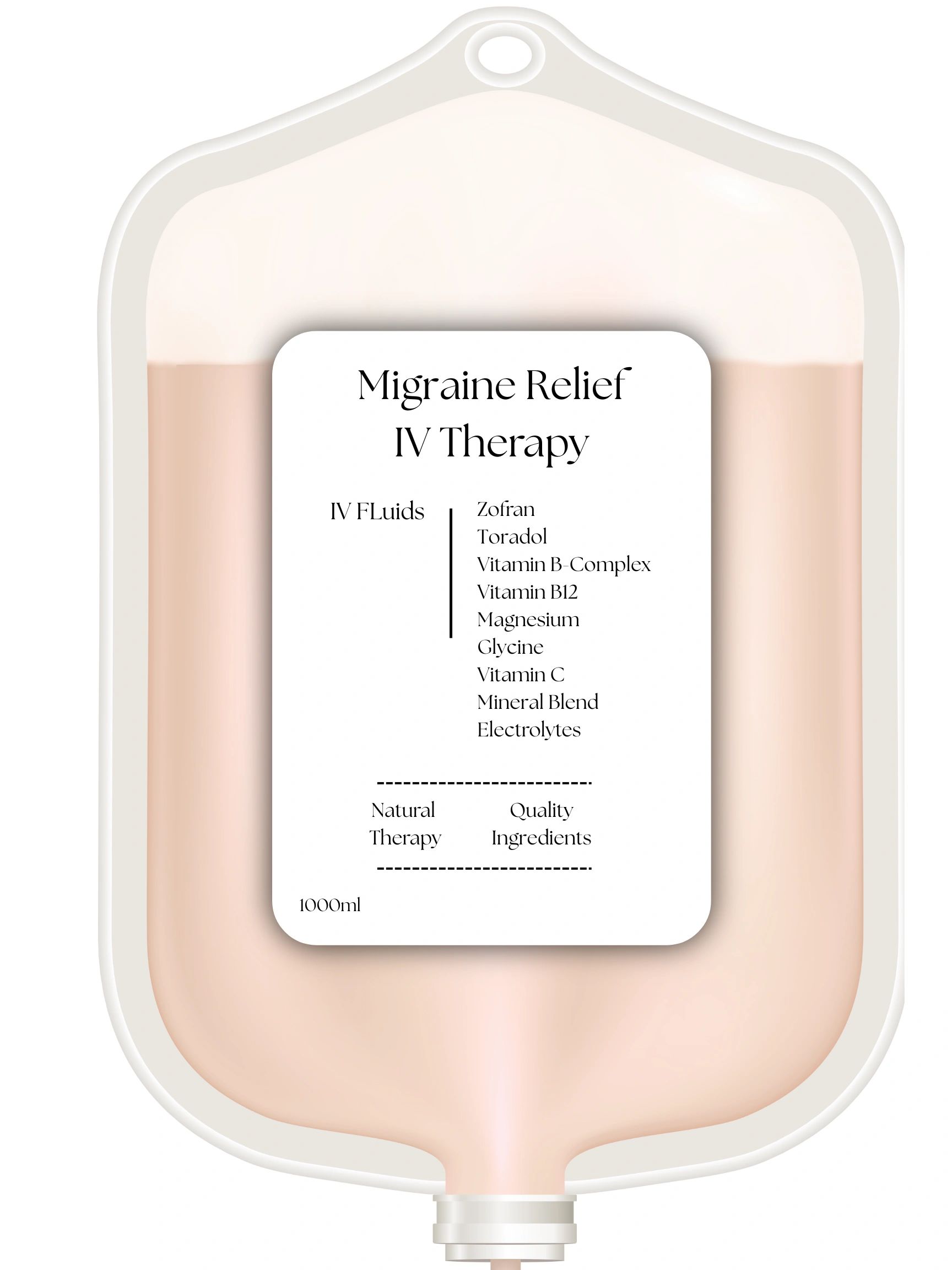 Our Migraine Relief IV Therapy delivers targeted nutrients directly into your bloodstream, ensuring rapid and complete absorption for maximum benefit. Migraines are complex neurological conditions influenced by various triggers unique to each individual. Managing migraines often requires a multifaceted approach including lifestyle, diet, medications, and supportive therapies.Administered by licensed healthcare professionals using high-quality, preservative-free ingredients sourced from FDA-regulated pharmacies, this therapy offers a safe, effective, and natural approach to managing migraines.